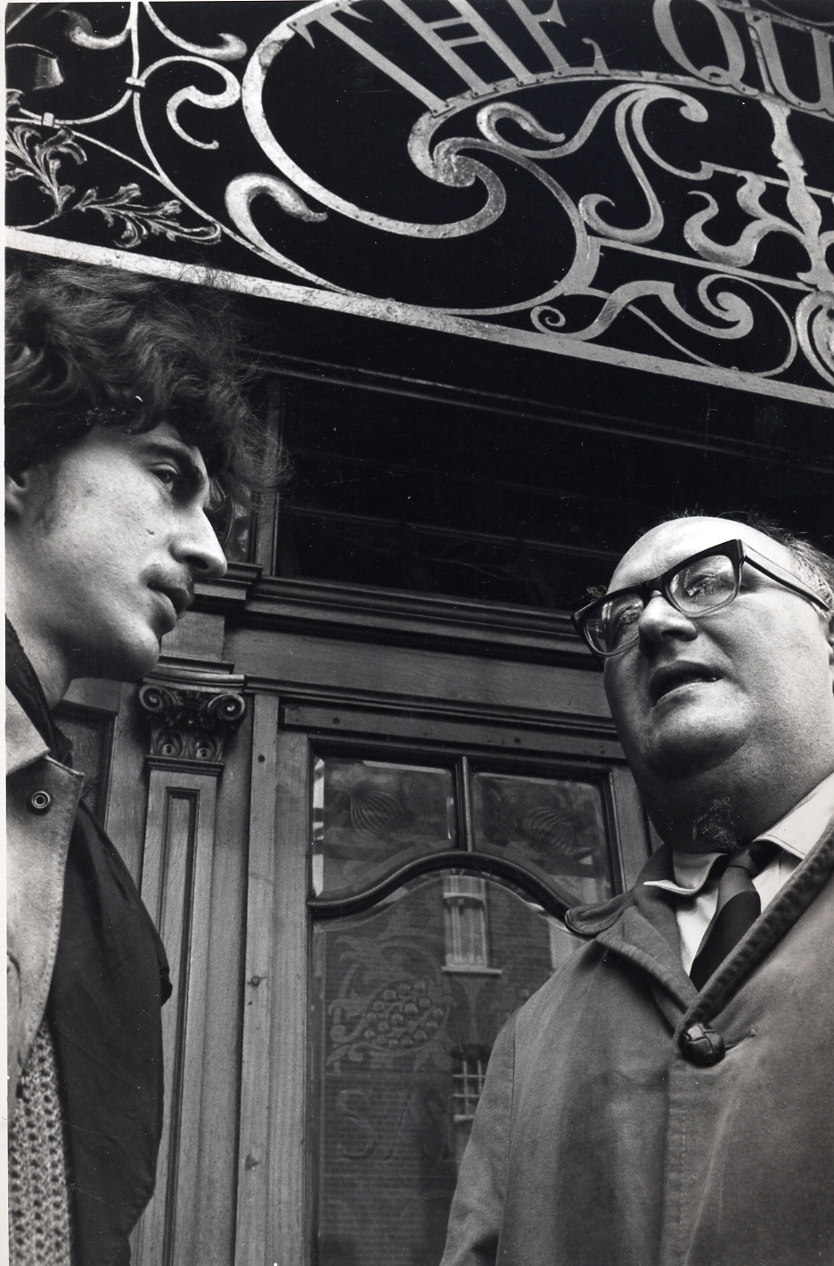 Stuart Christie and Albert Meltzer, outside the Queen's Head pub, Crouch End Broadway, 1968