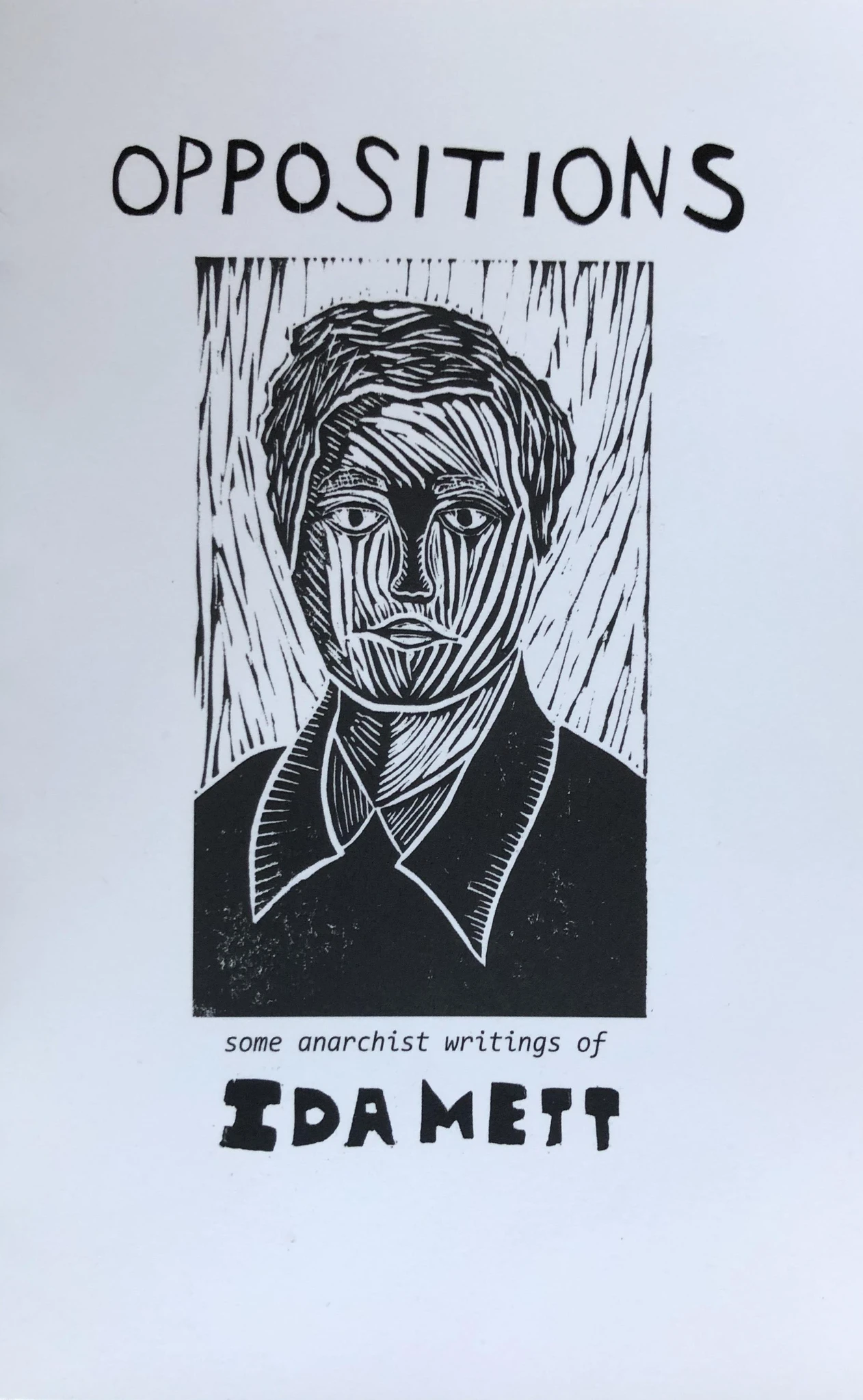 Oppositions: Some Anarchist Writings of Ida Mett, edited and published by Steimer Press, 2021, translations by Paul Sharkey, cover art by teev; ISBN 9781873605417, $6. Available via https://burningbooks.com/products/oppositions-some-anarchist-writings-of-ida-mett. See https://steimerpress.noblogs.org/ for more of Mett’s writings.