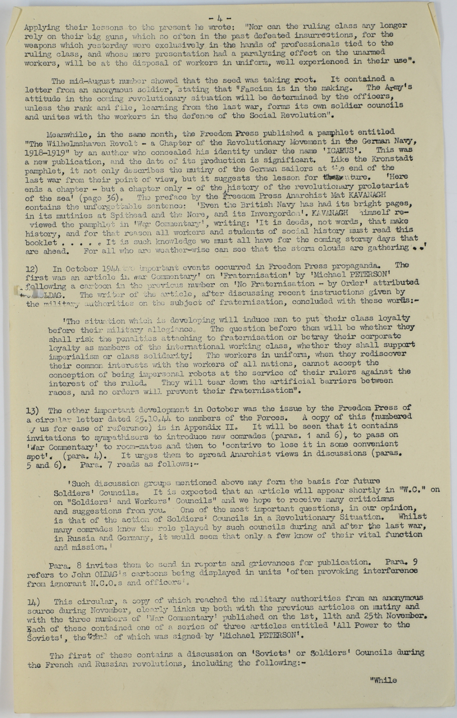 From the file HO 45/25554 DISTURBANCES: Anarchist organisations including the Freedom Press Anarchists, Industrial Workers of the World, the Syndicalist Workers’ Federation, the Godwin society and the Anarcho-Syndicalist Committee: history, aims and reports on activities; anarchist publications including War Commentary (subsequently Freedom through Anarchism), Direct Action, Freedom and The Syndicalist. https://discovery.nationalarchives.gov.uk/details/r/C4762054. This image is Crown Copyright and comes from the UK National Archives. If you want to use it you need to talk to them https://www.nationalarchives.gov.uk/legal/copyright/digital-copies-of-documents/